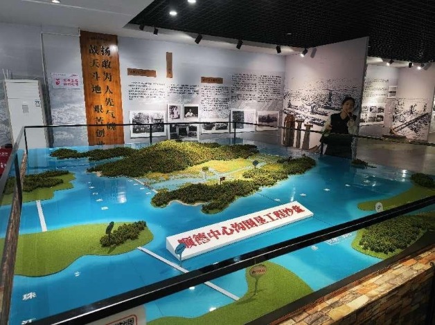 移步入內(nèi),是一個(gè)展示當(dāng)時(shí)中心溝地貌的沙盤。講解員介紹了當(dāng)時(shí)的地貌、水文特點(diǎn)。了解得越詳細(xì),就會愈加佩服當(dāng)時(shí)勞動人民的勇氣和智慧。